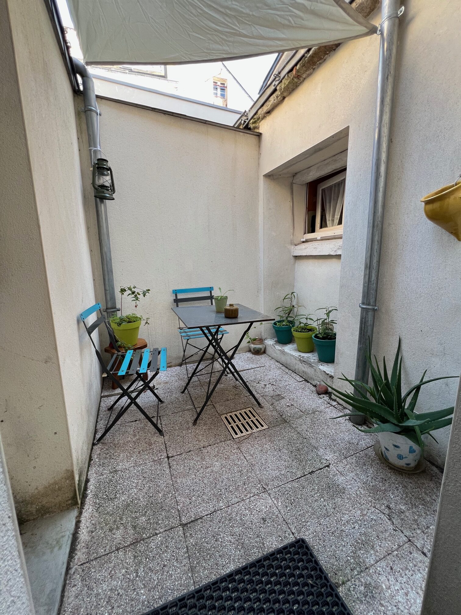 Le salon donne accès à une courette , idéal pour ceux qui veulent avoir un petit extérieur.